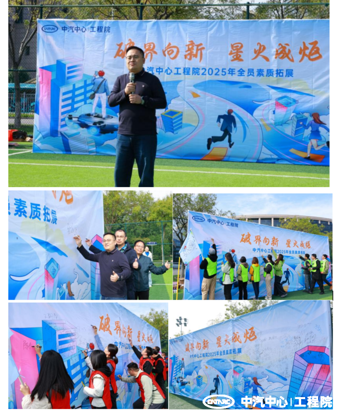 当午后阳光驱散晨寒,全体员工齐聚拓展赛场。工程院党委书记、副总经理(主持工作)张志国作开赛动员:“今日天气正如汽车产业破界融合之路——晨时低温似转型阵痛,此刻暖阳如破局曙光!只要我们心在一起,定能跨越寒冬,共赴春天!”全体员工在主KV签名墙郑重留名,把名字刻进蓝图,将星火聚为烈焰,共同许下与工程院共成长的坚定承诺。