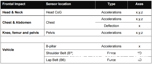 要求提供从0ms到头部在碰撞方向最大偏移量时刻加额外时间余量的通道数据,试验与仿真ISO MME编码依据 CP-005命名并保持一致 。