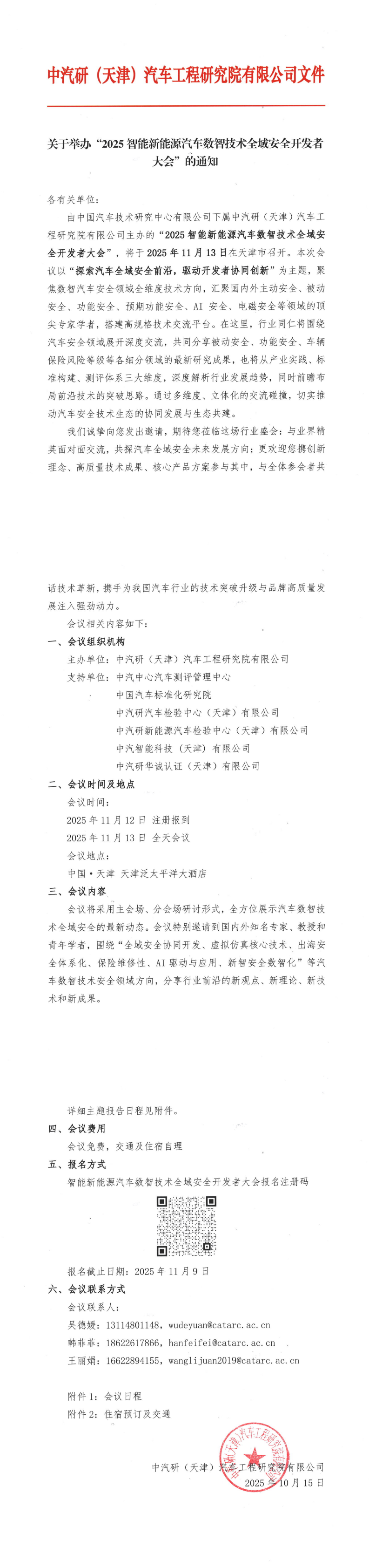关于举办“2025智能新能源汽车数智技术全域安全开发者大会”的通知
